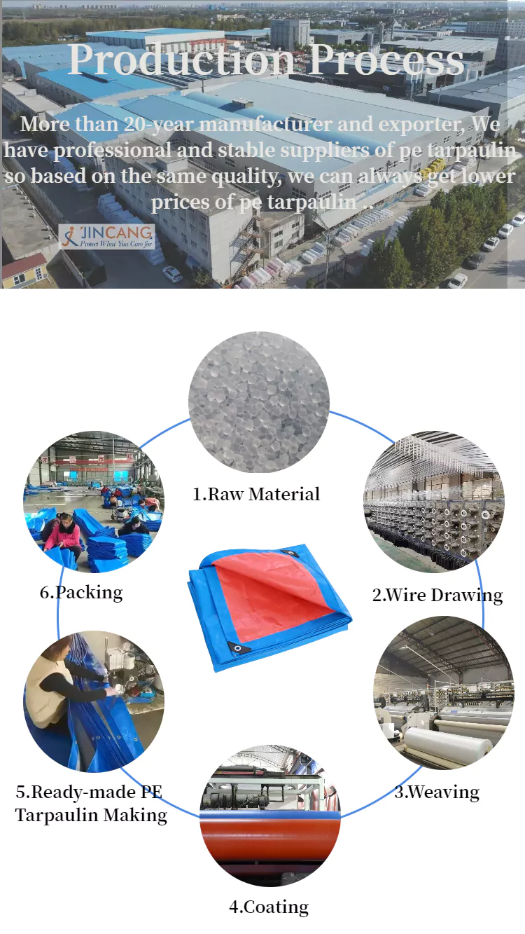 A Jincang az egyik professzionális PE ponyvatekercs gyártó Kínában, a 110 GSM Strip PE ponyvatekercs ötvözi a tartósságot és a láthatóságot, a polietilén vízálló tulajdonságait jól látható színes csíkokkal kombinálva. Széles körben használják kültéri védelemre, áruk, építkezések, mezőgazdasági célokra és ideiglenes menedékhelyekre.